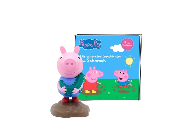 Sie ist klein, pink und liebt Matschepfützen über alles: Peppa Wutz begeistert mit ihren kurzen Geschichten schon die kleinsten Hörspielfans. Und jetzt kommt ihr kleiner Bruder Schorsch. Erlebt mit ihm und Peppa tolle Abenteuer: es geht zu Opi Mümmels Leuchtturm, zu Edmund Elefants Geburtstagsparty oder ins aufregende Mini-Land– stell Schorsch einfach auf deine Toniebox und begleite ihn und seine Familie und Freunde auf 8 lustigen Abenteuern.