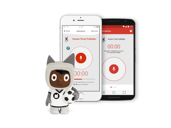 Mit der dazugehörigen, kostenlosen Smartphone-App können eigene Sprachaufnahmen aufgezeichnet und dem Kreativ-Tonie zugewiesen werden.
