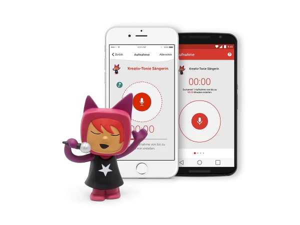 Zum Bespielen des Kreativ-Tonies stellen Sie diesen wie gewohnt auf die Toniebox. Mit der Tonie-App für das Smartphone können Sie dann einfach die Inhalte auswählen, die mit dem Tonie verbunden werden sollen.